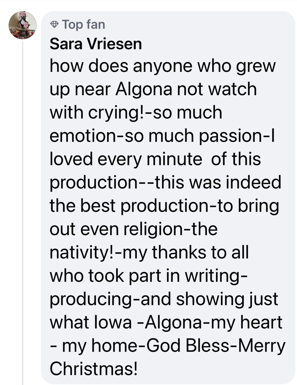Welcome new readers from Bulgaria, Netherlands and more. Our viewership has been growing in great numbers. Thank you to all the new people stopping in to visit. I’m sipping the hazelnut coffee and reflecting on a busy week. Maybe 2022 will be the year of the coffee sponsor. Maybe I’ll start a coffee review section? My thoughts are with all those dealing with the terrible tornado damage in the South. We had high winds in Michigan but it seems once again the surrounding Great Lakes helped us to avoid any major storms. I’m under a week before our first Christmas gathering and a week after that is Christmas Eve/day. I’ve loved having the Christmas tree and the festival vibe about as I tried to play catch up from our SILENT NIGHT IN ALGONA (SNIA) film shoot. Let’s talk about that-
